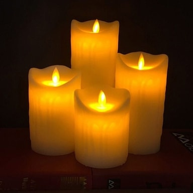 Stilig varmhvitt lysende lys med stille blafrende flamme bidrar ti koselig stemning uansett hvor du plasserer dem.