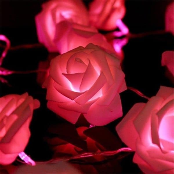 20 stk blomster sitter på den 5m lange sløyfen og lyser rødt.