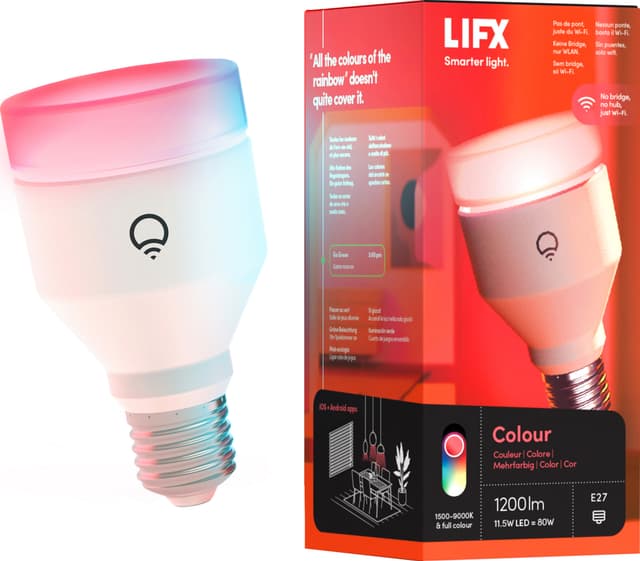 Gjør hjemmet ditt livligere med LIFX Colour LED-pære. Det imponerende utvalget av 550 milliarder dristige farger vil legge til litt ekstra spenning til dine daglige aktiviteter, mens du kan justere hvittonene slik at det dekker ditt behov i enhver situasjon. Lyspæren kan enkelt styres via WiFi-tilkobling på smarttelefonen din, om ønskelig med stemmekontroll.