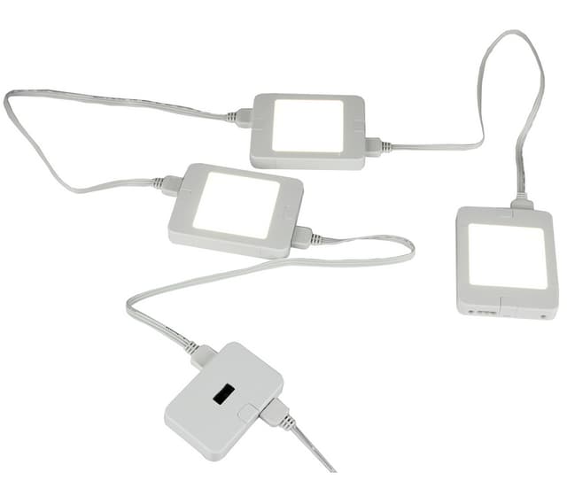 Led benkebelysning i hvit utførelse. Edge-lit teknologi. 3 i 1 bevegelsesensor, styrt med on/off. Dimbar med låsfunksjon, linkbar og synkron. Varmhvit led 3000k med fargegjengivelse på 82cri. 24w driver inkludert. Effekt: 3,3w. Ip21. Lxbxh: 73x60x12 mm.spesifikasjoner: