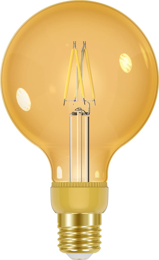 Ravfarget glass Med ravfarget glass og synlige filamenter skaper denne lyspæren et mykt skinn med en rustikk følelse, selv ved maksimal lysstyrke.