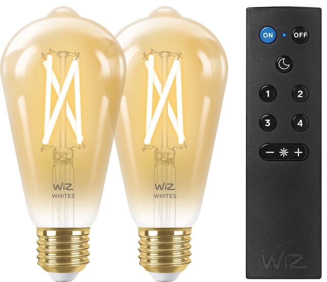 Få stiligere interiør med WiZ LED startpakke E27 7W 929003057001. De energieffektive LED-lyspærene med indre filament og vintage design byr på tonet hvitt lys, og du kan styre lyset enkelt takket være WiZmote som er inkludert i pakken. WiZ-lyspærer fungerer med din eksisterende WiFi-router, så det ingen behov for ekstra inngangsporter for å nyte de avanserte funksjonene.