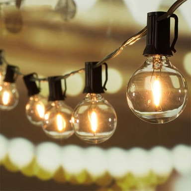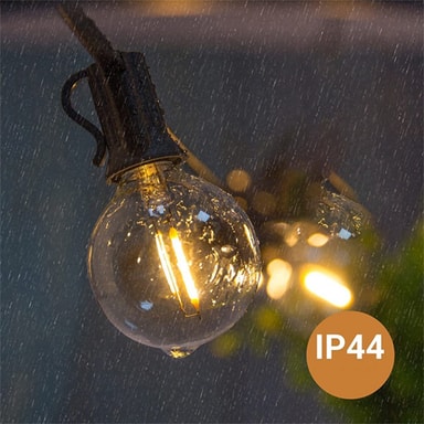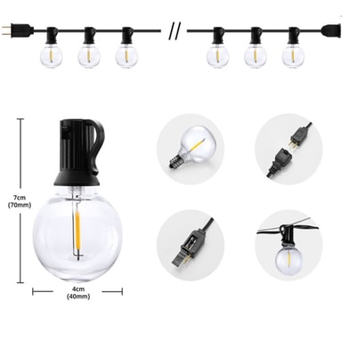 10m 15 LED E12 Sokkel Lyslenke, svart, 220V. Vanntett, energieffektiv for terrasser, hager, camping, bryllup og juledekorasjoner. Inkluderer en ekstra pære for ekstra bekvemmelighet.Les mer om produktet