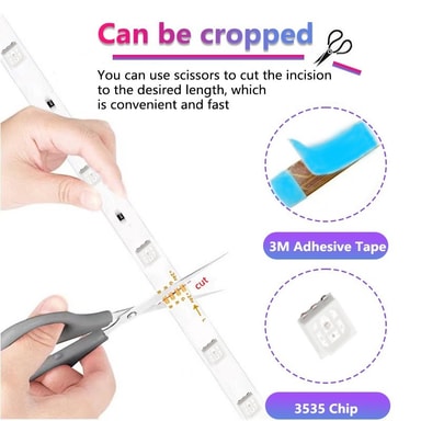 Enkel installasjon og kontroll: Vårt LED stripelys kit er designet for enkel installasjon og brukervennlig kontroll. Den fleksible stripen kan enkelt kuttes hver 50 cm (8 lysdioder) for å passe dine spesifikke behov, og den selvklebende baksiden sikrer sikker feste til enhver ren overflate. Den medfølgende fjernkontrollen lar deg enkelt bytte mellom farger, justere lysstyrken og velge mellom forskjellige lysmoduser. Dette gjør det enkelt å tilpasse belysningen for å matche humøret ditt eller anledningen. Nyt problemfritt oppsett og intuitiv kontroll for en sømløs belysningsopplevelse. Perfekt for alle som ønsker å legge til litt farge og stil til hjemmet sitt uten komplisert installasjon.
