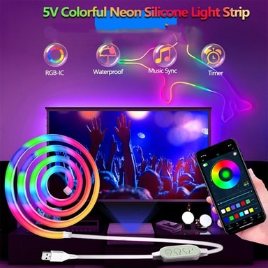 Easy Installation & Safe: Sett opp den nye belysningen din på få minutter med de medfølgende monteringsklipsene og USB-strøm. Det fleksible silikonmaterialet gjør det enkelt å bøye og forme, noe som gjør det enkelt å installere stripen i trange rom eller rundt hjørner. USB-strømdesignet lar deg drive stripen fra en hvilken som helst standard USB-port, for eksempel en datamaskin, strømbank eller USB-veggadapter. De medfølgende monteringsklipsene gir en sikker og pålitelig måte å feste stripen til en hvilken som helst overflate. IP67 vanntett vurdering sikrer at stripen er beskyttet mot sprut og fuktighet, noe som gjør den egnet for bruk på bad, kjøkken og andre fuktige miljøer. Lavspenningsdrift sikrer sikker og energieffektiv drift. Nyt problemfri installasjon og trygghet med denne brukervennlige og sikre neon LED-stripen.