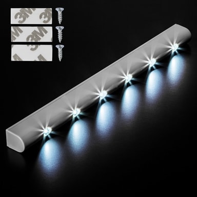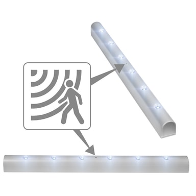 Denne praktiske LED-lyslisten med bevegelsesdetektor er en praktisk finesse for kjøkkenet, skap, kasser eller i små rom innendørs. Kan installeres i en håndvending uten kabel eller nettenhet. Lyslisten drives med 5 st AAA / R03-batterier (inngår ikke) og kan lyse i opp til 20 000 x 20 sekunder. Listen lyser så lenge bevegelse oppdages og ytterligere 20 sekunder etter den sist oppdagede bevegelsen.