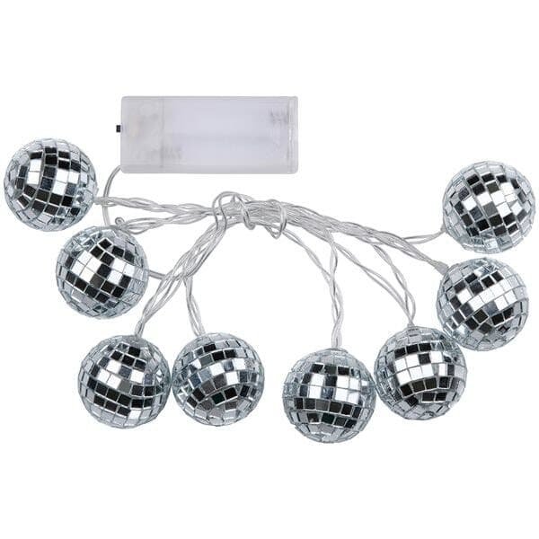Denne LED-sløyfen med discokuler er den ultimate dekorasjonen for å skape en festlig og glitrende atmosfære i julen. Hver discokule har en diameter på 5 cm og er utstyrt med 8 LED-lys som skaper vakre lyseffekter i rommet. Sløyfen måler 130 cm, noe som gjør den fleksibel å bruke i ulike omgivelser - perfekt til juletreet, rundt speil eller langs hyller. Med batteridrift kan den plasseres hvor du vil uten å være avhengig av stikkontakter.