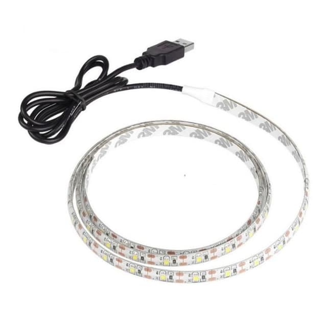 En komplett pakke med en 1 meter lang LED-stripe og en USB-strømkabel. Selvklebende monteringstape er tilgjengelig på stripene og kan monteres hvor du vil, vil være veldig fint som for eksempel bakgrunnsbelysning for TV, men passer til alle typer belysning