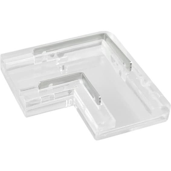 Designet for 24 V COB LED-strips med jevn lyslinje og høy lysytelse. Hjørneskjøten har solid plastkonstruksjon og metallkontakter som gir pålitelig elektrisk forbindelse. Kompatibel med både IP20 og IP67.