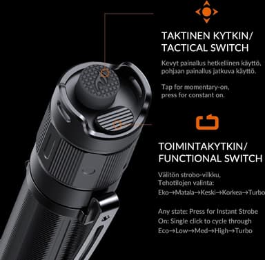 Den nyeste SFT40 LED-emitteren kombinert med en presisjonsslipt reflektorkjegle gir en kraftig kombinasjonsstråle på 1700 lumen som har en rekkevidde på opptil 353 meter (ANSI/PLATO FL1). Med den integrerte USB-C-ladekontakten kan du raskt lade opp lampens 3400 mAh Li-ion-batteri fra bunnen av på bare tre timer! Ladekontakten er også fullstendig IP68-klassifisert innvendig, og lampen beholder full vanntetthet selv når dekselet til ladekontakten er åpent! Takket være den kompakte størrelsen er PD35R svært enkel å håndtere og bruke (mål 36 x 25,4 x 23,2 mm). Fenix PD35R fungerer med ett 18650 oppladbart Li-ion-batteri (inkludert) eller alternativt med to CR123A-batterier, maks. 100 timer (Eco-lyseffekt). Et bredt utvalg av tilbehør utvider bruken av lampen ytterligere.