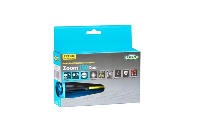 • Zoom 150 lm Alu ficklampa, laddningsbar