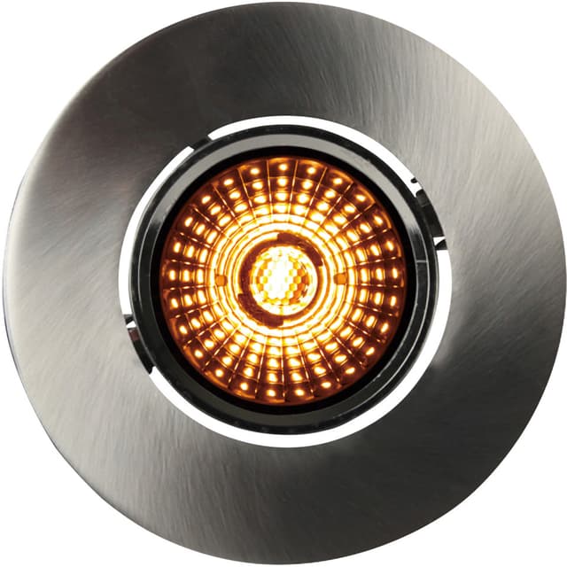 Altea tilt er en led-downlight i børstet stål fra namron på 8 w som kommer i et solid og stilig design. Lyset kan dimmes helt ned uten flimmer, og når lyset dimmes ned, endres også fargetemperaturen fra 2800k til 2000k. Downlighten har en lavtbyggende profil. 5 års garanti på driver.bruksområde: for innendørs bruk (ip 20). montering: felles inn i tak med en utsparing på 76 mm og kobles til med medfølgende hurtigkobling. Kan monteres uten verktøy. spesifikasjoner: