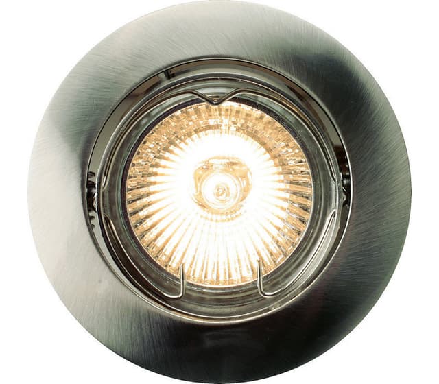 Downlight 12v mr11 rund i aluminium. Vippbar 25º. Max 35w. Sokkel gu 4. Utvendig mål:66mm x 66mm. Utsparring: ø 57mm. Dybde 105mm. Ip20. Farge: børstet stål.spesifikasjoner: