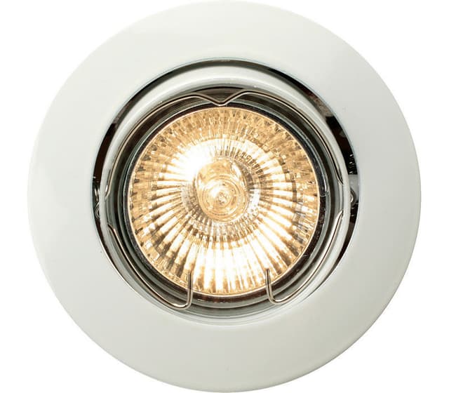Downliight 12V MR11 rund i aluminium. Vippbar 25º. Max 35W. Sokkel GU 4. Utvendig mål:66mm x 66mm. Utsparring: Ø 57mm. Dybde 105mm. IP20. Farge: hvit.Les mer om produktet
