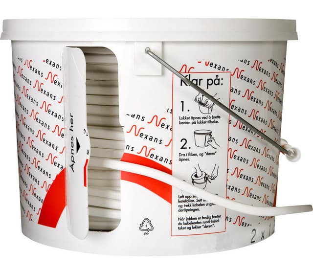 downlightkabel 90 grader med pvc lederisolasjon og pvc ytrekappe. Bruksområde: fkx 90 er spesielt beregnet for downlight-belysning. Kabelen er tilgjengelig i variantene 2x1,5 og 2x2,5 mm², og er en dobbelisolert kabel som tåler en kontinuerlig ledertemperatur på 90 °c. Fkx 90 er dermed mer motstandsdyktig mot de temperaturer som kan oppstå i downlightanlegg enn tradisjonelle pvc-isolerte kabler. Kabelen leveres i den montasjevennlige forpakningen bøtte og er metermerket. Konstruksjon og test standard: ss 424 02 31-12, iec 60332-1/en 50265 konstruksjon: leder: flertrådet rund glødet kobber isolasjon: høytemperatur pvc ytterkappe: høytemperatur pvc farge: hvit maks. Kontinuerlig ledertemperatur: 90 °c