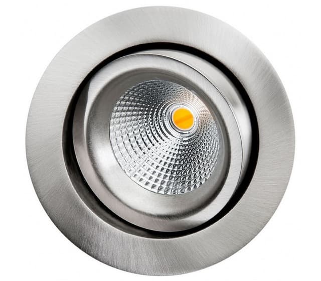 Lavtbyggende rund downlight. Med en inntrukket lyskilde for mindre blending. Kan vippes i alle rettninger opptil 30°. Med en lysspredning på 36° gir det en fin spredning av lyset. Det er 50 000 timer levetid på lyskilden, fargtemperaturen justeres fra 2800k ved 100% og 2000k når den dimmes ned til ca 5%. Gyro dimtowarm leveres komplett med driver. Effekt: 6w. Farge: børstet stål. Ip23.spesifikasjoner:
