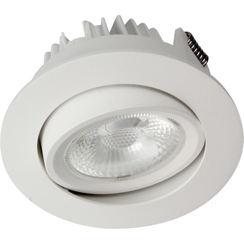 Hvit led-downlight fra unilamp på 10w kan tiltes 30 grader i alle retninger. Juno cob+ byr på meget god fargegjengivelse med ra 95. Kan dimmes helt ned uten flimmer, og har en varm hvit fargetemperatur. Anbefales brukt sammen med dimmer kdt-250e.teknisk beskrivelse: • driver: 230 ma • konstantstrøm • dimbar. • lysstyrke: 650 lm. • ra/cri: 95. bruksområde: for innendørs og utendørs bruk, sprutsikker (ip44). montering: felles inn i tak med en utsparing på 82-84 mm og kobles til med medfølgende hurtigkoblinger. Mulighet for viderekobling i led-driver og snapkobling mellom armatur og driver. Kan monteres uten verktøy. spesifikasjoner: