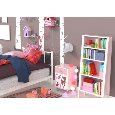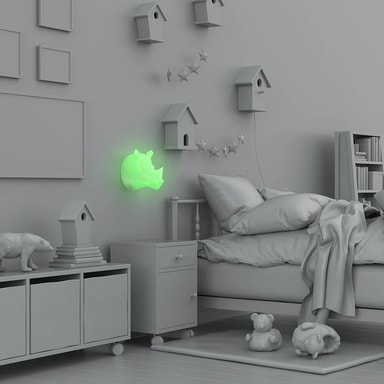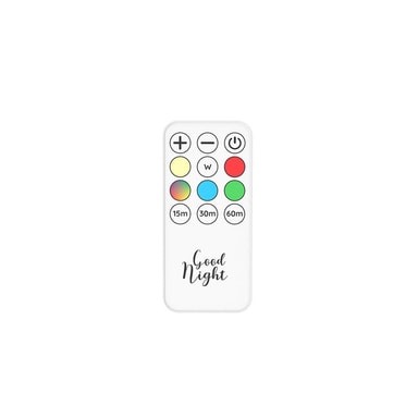 Nattlampen slås på med en fjernkontroll og skifter deretter farge avhengig av modus. Takket være fjernkontrollen kan du kontrollere lysets intensitet, fargene (7 farger tilgjengelig) og modusene (15-30-60 minutter, rullende farger. Du kan skape den atmosfæren du ønsker!