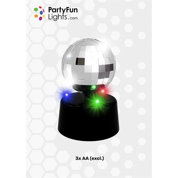 Fest denne roterende discokulen i rommet og den vil reflektere, mens den roterer, alt tilgjengelig lys. Naturligvis kan du også rette en spesiell lampe mot den for enda større effekt!
