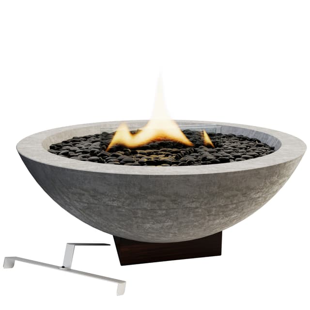 Denne dekorative peisen har en diameter på 50 cm. Peisen er laget av magnesiumoksid-basert (MgO) betong, et materiale som har blitt brukt i tusenvis av år til å bygge arkitektoniske vidundre slik som for eksempel pyramidene i Egypt. MgO-betong er mer miljøvennlig enn vanlig betong.
