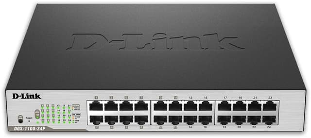 D-Link EasySmart nätverksswitch, 10/100/1000Mbps, 24xRJ45, PoE, metall, svartGigabit Ethernet nettverksswitch med 24st 10/100/1000Mbps porter, hvor port 1-12 er PoE porter.Les mer om produktet