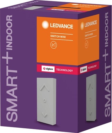 Ledvance Smart+ Switch Mini er en smart elektronisk bryter med tre individuelt konfigurerbare knapper og opp til seks funksjoner som kan velges ved hjelp av lange eller korte knappetrykk. Videre har den et moderne og superkompakt design som vil passe enhver husholdning. Bryteren er batteridrevet, støtter Lightify-systemet og bruker ZigBee-nettverksprotokoll. Via TouchLink og uten internett lar Smart+ Switch Mini deg også styre opptil 10 enheter som er kompatible med SMART+ og andre ZigBee-kompatible produkter. Lightify Gateway og Lightify-app kreves for konfigurering.