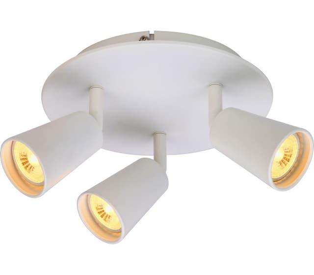 Spotlampe i presstøpt aluminium med 3 justerbare spotlights for innendørs takmontering. Klasse i, ip20.spesifikasjoner: