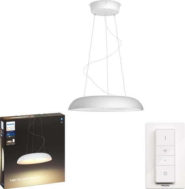 Lampen krever en Philips Hue-bro. Monteringen er enkel­ – bare plugg i broen og la den smarte Philips Hue-appen veilede gjennom prosessen med å koble sammen alle dine Philips Hue-lys. Appen er tilgjengelig både for iOS- og Android-brukere.