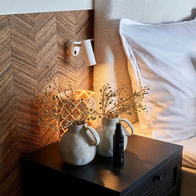 Veggspott Design White er en stilig vegglampe på 12 volt med integrert LED i en svart finish. Lampehodet er svingbart og egner seg spesielt godt som sengelampe.