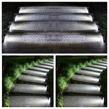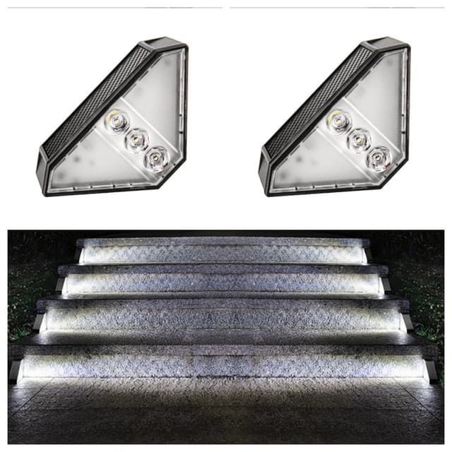Solcelledrevet trappelys med hvitt lys, perfekt for utendørs bruk. Enkel installasjon, ingen ledninger, og lyser automatisk om natten. Ideell for hager, stier og trapper. Laget av ABS+PC materiale.Les mer om produktet