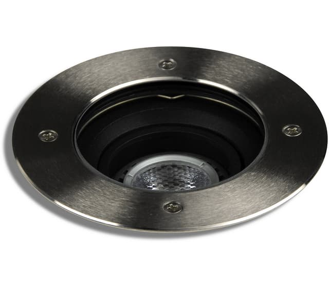 Zet1 round er en solid uplight i børstet rustfritt stål.teknisk beskrivelse: 15° innvendig tilt, leveres med dimbar prismacob+ 6,5w gu10 led-lyskilde. bruksområde: zet tåler trykk på opptil 1000 kg hvilket gjør den ideell til montering ved oppkjørsler og langs garasjeveien. montering: til nedfelling i bakke eller i gulv. produktegenskaper:
