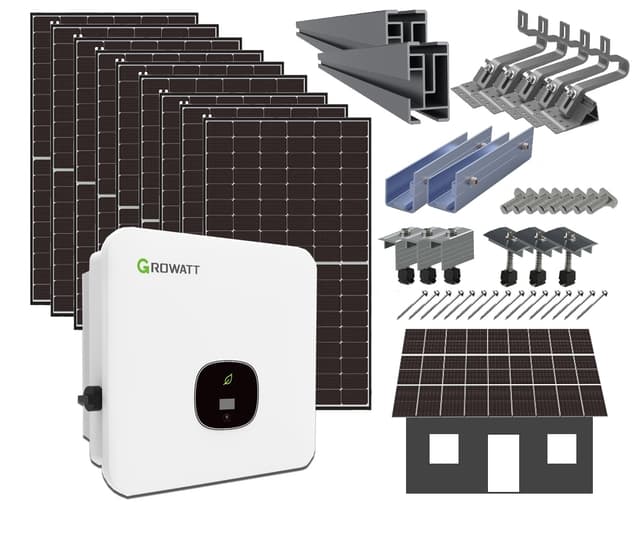 Solcelleanlegg på 10kW med Jinko solcellepanel, Growatt inverter og Bisol EasyMount festemateriell for skråtak med tegl. Passer til hus og hytte som er tilkoblet 400V 3-fas strømnett. Pakken inneholder * Solcellepanel: Jinko Solar Solcelle - Tiger Neo N 415W - 27 stk. * Inverter: Growatt 3-fas 400V 10KW TN Inverter - 1 stk. * Festemateriell: Bisol´s EasyMount for skråtak med tegl. Pakken er sammensatt av produkter med høy kvalitet og får deg raskt klar til å både bruke og selge egenprodusert strøm. Den inneholder det du trenger med unntak av solcellekabel fra panelene til inverter og MC-4 kontakter med verktøy. Inkluderer det du trenger for å fordele solcellepanelene i 3 rader. Hver rad er beregnet til 9 stående paneler. Takkroken har trippel justering og passer de fleste tegltak. Dersom du endrer konfigurasjonen f.eks. ved at det er en pipe, kvist eller lignende vil dette endre hvor mye festemateriell du trenger. Antallet festemateriell som er i pakken er hentet fra Bisol og er en generell beregning.