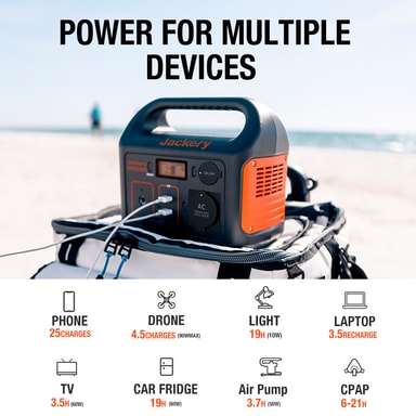 Jackery Explorer 240 er en praktiskt bærbar strømkilde som egner seg bla. for lading av PC og telefon, drift av TV og lyskilder. Meget praktisk på reise og camping, eller som reserve hjemme ved strømbruddLes mer om produktet