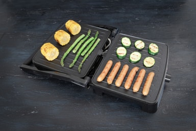 Nyt grillede grønnsaker, smørbrød, og biff med Gastronoma smørbrødgrill 18240001. Denne kontaktgrillen på 2200W kan også brukes som bordgrill, med non-stick belegg og justerbar termostat for enkel bruk.Les mer om produktet