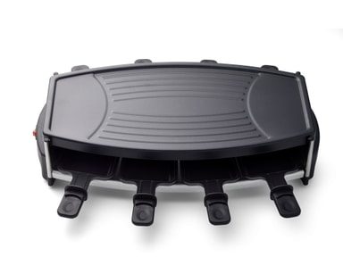 Raclette til 8 personer med 1000w effekt. Stor stekeflate med non stick belegg med masse plass. 8 små panner med non stick belegg. Stekeflaten er avtagbar så den er enkel å gjøre ren.Racletten har sklisikre føtter så den står godt fast.Les mer om produktet