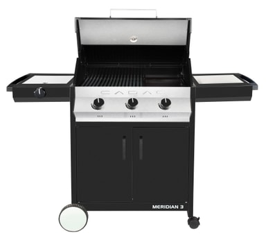 Förstklassig Meridian-gasolgrill i europeisk stil med 3 brännare och sidobrännare samt Cadacs modulära tillbehörssystem som ger ännu fler tillagningsmöjligheter. Rengöringsvänlig konstruktion med dräneringskanaler till utvändig droppskål, så att grillen enkelt kan rengöras med ugnsrengöringsmedel eller vatten och diskmedel efter varje användning. Inklusive 3 tillagningsgaller. Matlagningsyta: 1×111×488 + 1×263×488 mm Thermogrid-grillgaller samt 1×263×488 mm VE Plancha. Mått och vikt: 147,7×60×115 cm, 58 kg. Total värmeeffekt: 12,5 kW. Lackerade sidor i mattsvart, svart lock.