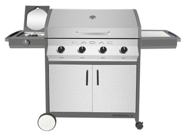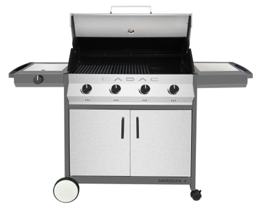 Meridian førsteklasses gassgrill i europeisk stil med 4 brennere og sidebrenner, pluss Cadacs modulære tilbehørssystem, som gir enda flere tilberedningsmuligheter. Rengjøringsvennlig konstruksjon med avløpskanaler til utvendig dryppanne, slik at grillen lett kan renses med ovnsrens eller vann og oppvaskmiddel etter bruk. Inkludert 3 tilberedningsrister. Matlagingsareal: 2×258×488 mm Thermogrid-grillrist og 1×263×488 mm VE Plancha. Mål og vekt: 162,7×60×115 cm, 68 kg. Total varmeeffekt: 15,3 kW. Lakkerte sider i metallgrått, lokk i rustfritt stål.