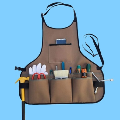 Flere oppbevaringslommer: Hold deg organisert og effektiv med forkleets flere oppbevaringslommer. Disse lommene er designet for å romme en rekke verktøy og tilbehør, og holder alt innen rekkevidde, noe som gir sømløse overganger mellom oppgavene.