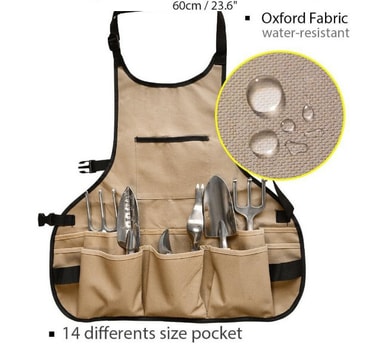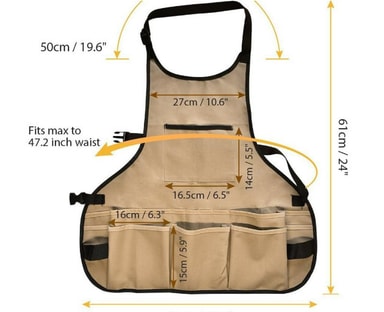 Komfortabel og justerbar passform: Forkleet har en justerbar nakkestropp og midjebånd, noe som gir en tilpassbar og komfortabel passform for brukere i alle størrelser. Enten du steller med delikate blomster eller tar deg av tungt hagearbeid, vil dette forkleet holde deg komfortabel og støttet.