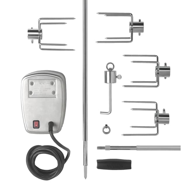 Lag velsmakende retter på din Napoleon-grill med denne rotisserien med kraftig motor for optimal rotasjon og steking. Grillspiddet er laget i rustfritt stål.