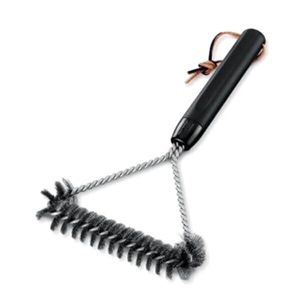 Grillbørste med tre sider og ergonomisk håndtak, kommer åt skikkelig i grillens alle hjørner. Smart trekantig grillbørste som gjør det lett å komme åt smussen på gallret slik at du alltid kan ha en ren grill rede. Hår i stål og skaft av melamin. Det går raskt at bruke den, også på gasolgrillens brennere. Unngå at legge unødvendig mye tid på rengjøring.