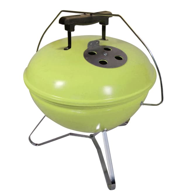 Grillyta: 36 cm Färg: Limegrön Stålben x 3 st. Grillgaller: 4x3 mm Emaljerad botten och lock Ventilation i botten och i locket Nylonhandtag Låset på locket fungerar som bärhandtagLes mer om produktet