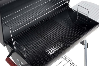 Grillmesterens drøm, en kullgrill i tønneformat! Med et avtagbart sidebord, en smart askeoppsamler og et sjenerøst oppvarmingsgitter tar det grillopplevelsen til neste nivå. Juster varmen på et blunk med kullristen for å heve og senke, og med det praktiske håndtaket og to glatte hjul blir det enkelt å flytte rundt og finne det perfekte grillstedet. Krydre hvert øyeblikk med Landmann Black Taurus 660 - hvor form og funksjon møtes i perfekt harmoni!