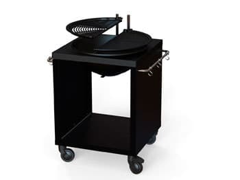 grill, rist og stegeplade fremstillet i sortemaljeret støbejern, mens bordet er sort pulverlakeret stål.