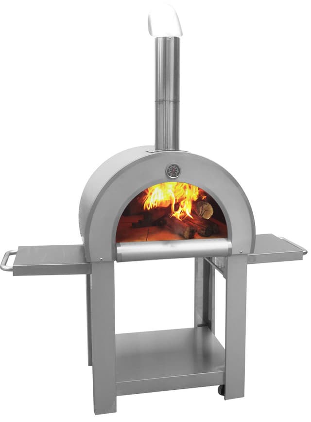 Moderne og frittstående vedfyrt pizzaovn av 100% rustfritt stål 304. San diego kommer opp i 350°c på 10 minutter, og etter kun 30 minutter kan temperaturen nå hele 500°c. Når den vel er varm, hjelper konstruksjonen med to ytterskall til med å holde på varmen til alle middagsgjestene er kommet. Inne i pizzaovnen finnes et tykt lag med ildfast murstein hvor dere tilbereder maten. Under finner dere et rustfritt stativ som passer utmerket til oppbevaring av ved. San diego står på fire hjul, noe som gjør den utrolig fleksibel og lett å håndtere. En robust ovn som garantert lager de beste pizzaene! Selvfølgelig kan du også lage andre matretter og bakverk. En pizzaovn som vil få middagsgjestene til å måpe!