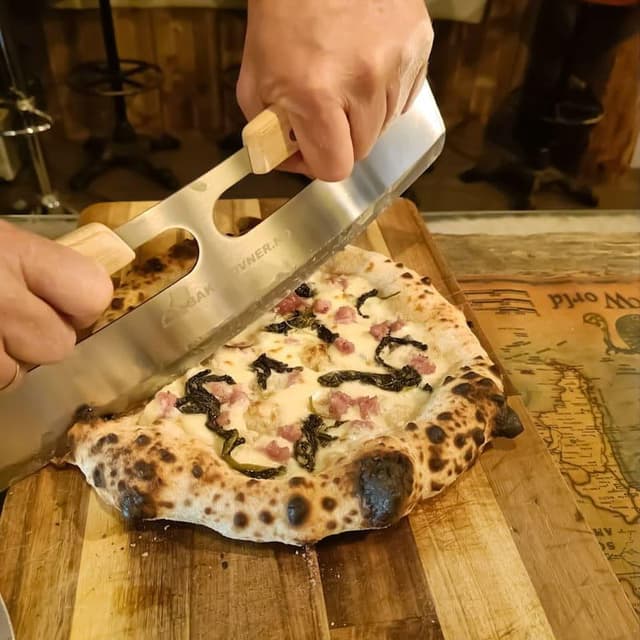 Elegant og utrolig effektiv pizzakutter utført i rustfritt stål med håndtak i tre.Ergonomisk utformet, god å holde i.Skarp kant gjør kuttingen presis og effektivkutter hele pizzaen i en bevegelse35 cm lengdeutført i rustfritt stål med lasergravert loLes mer om produktet