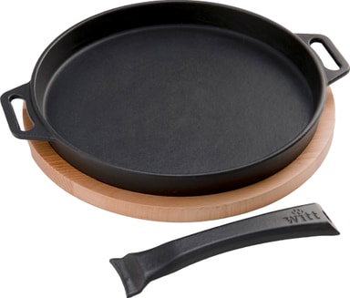 Witt Etna pizza grillpanne 48651024 er laget av slitesterkt støpejern og leveres med trebunn. Du kan ta av håndtaket når du vil, slik at du kan la den stå i ovnen og få kjøttet eller grønnsakene perfekt grillet.