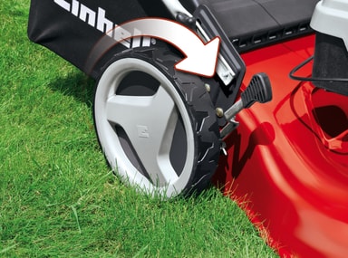 Fyrtaktsmotor med 1 cylinder Bakhjulsdrift som kan avaktiveras Central kaphöjdsjustering, 6 nivåer Ergonomiskt, fällbart långt handtag med soft grip Höjdjusterbart, långt handtag med 3 inställningar Snyggt hölje i pulverlackerad plåt Gräsuppsamlare med nivåindikator Handtag med startkabel Marktäckningsfunktion (med marktäckningsadapter) Höga hjul Rekommenderas för gräsmattor på upp till 1 400 m² Motor: fyrtakt, luftkyld Motorförskjutning: 139 cmü Effekt: 1,9 kW Arbetshastighet: 3 000 v/min Bränsletankens volym: 1,3 l Kapbredd: 46 cm Kaphöjdsjustering: 6 inställningar | 30–80 mm | central Uppsamlingspåsens volym: 70 l Hjuldiameter fram: 204 mm Hjuldiameter bak: 280 mm