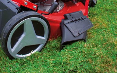 4-stroke engine with 1 cylinder Steerable front wheel for unprecedented maneuverability Front wheel lockable on handle - for more comfort Disengageable rear-wheel drive Central cutting height adjustment (rear axle), 8 levels Ergonomic, folding long handle with soft grip Height-adjustable long handle with 3 settings Attractive, powder-coated sheet steel housing Grass bag with level indicator Handle with starter cable Mulch adapter with mulching function Side ejector Highwheeler Recommended for lawn areas up to 1.800 m² Engine: four-stroke, air cooled Engine displacement: 196 cmü Power: 2.8 kW Working speed: 2,850 min^-1 Capacity of fuel tank: 1,000 mL Cutting width: 51 cm Cutting height adjustment: 8 settings | 30-80 mm | central rear axle and front on single wheel Capacity of catch bag: 70 L Wheel diameter front: 170 mm Wheel diameter rear: 290 mm