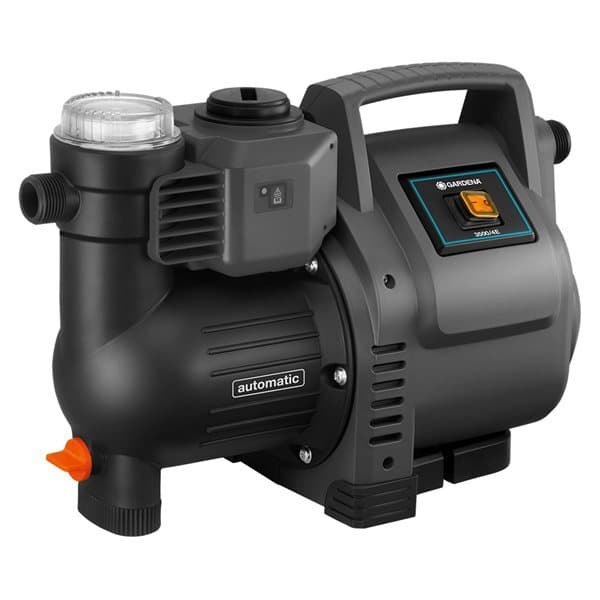 Praktisk vannforsyning for mindre hus og hager GARDENAs automatiske hjemme- og vanningspumpe 3500/4 kan brukes til vannforsyning til husholdningsbruk, til toalettspyling og til vaskemaskin. Men den kan også brukes som vanningspumpe. Den integrerte elektronikken aktiverer automatisk denne robuste hjemme- og vanningspumpen når vann er nødvendig, og slår den deretter av igjen. Home & irrigation pumpen er utstyrt med en jetpumpe som pumper vannet raskt, pålitelig og stillegående. Tilbakeslagsventilteknologien garanterer raskt sug. Det integrerte lavkvantumsprogrammet garanterer pålitelig drift selv for små leveringskapasiteter. Bolig- og vanningspumpen har også et feildiagnosesystem. På denne måten indikeres selv små feil, som oppstår for eksempel gjennom dryppende kraner eller sugeproblemer, tydelig via en LED som blinker med forskjellige frekvenser avhengig av status. På denne måten kan målrettede tiltak settes i gang dersom det oppstår problemer. Et bærehåndtak på enheten muliggjør enkel transport.